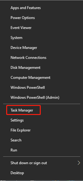 Step 1: Right-click on the Windows icon and then click Task Manager.