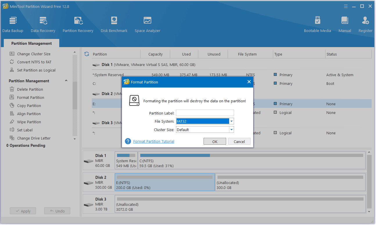 However, all these tools have a limitation – unable to convert the partition over 32GB to FAT32 directly. So, we highly recommend you use a professional partition manager – MiniTool Partition Wizard.