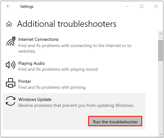 Step 3: In the next window, click Windows Update. Then click Run the troubleshooter.