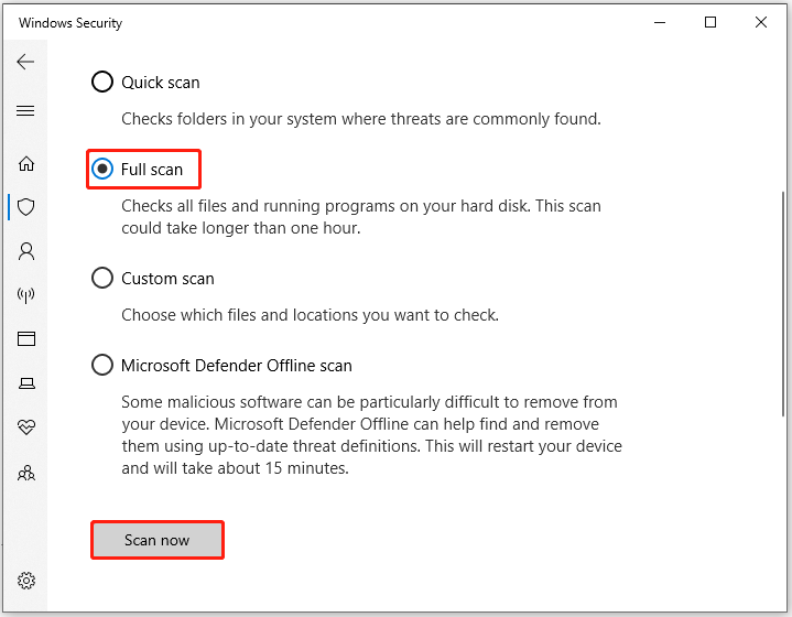 Step 4: Choose Full scan and click Scan now. Then the scan process will start.