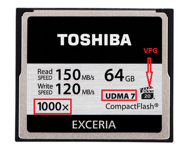 The last rating system is VPG (Video Performance Guarantee). It starts from CF 5.0 and is designed for very high-end HD video recording (professional DSLR cameras and camcorders). It is a minimum speed guarantee for the application to continue writing the data stream.