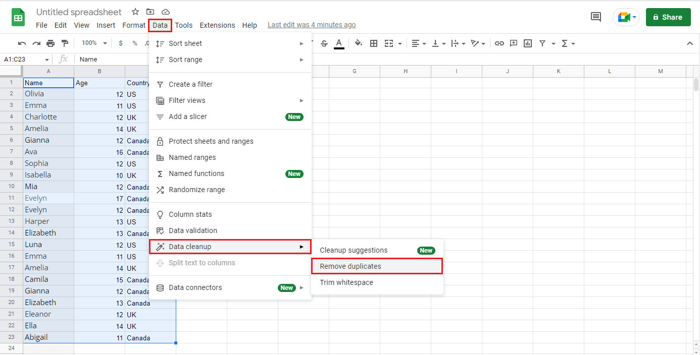 How to remove duplicates in Google Sheets? You can use this method to highlight your duplicates and then remove the highlighted duplicates. Here’s the guide: