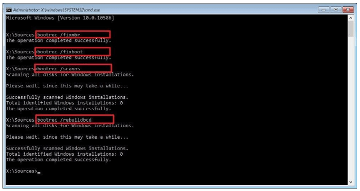- bootrec /rebuildbcd