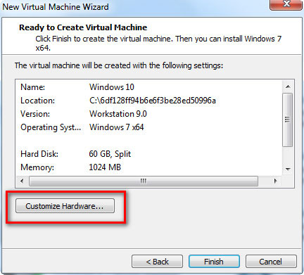 Step 4: Go ahead and select “Finish” button to move on if you’re okay with the VMware defaults. Certainly, you can also customize the hardware that your VM will use.