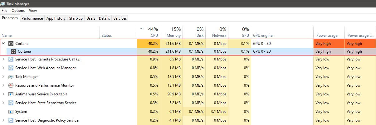 According to many reports, Cortana’s SearchUI.exe process (located in C:WindowsSystemAppsMicrosoft.Windows.Cortana_cw5n1h2txyewySearchUI.exe) occupies the entire processor core after applying this update version.