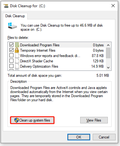 Step 3: Click Clean up system files. (If you want to free up more space, you can also delete system files. If not, just ignore this step.)