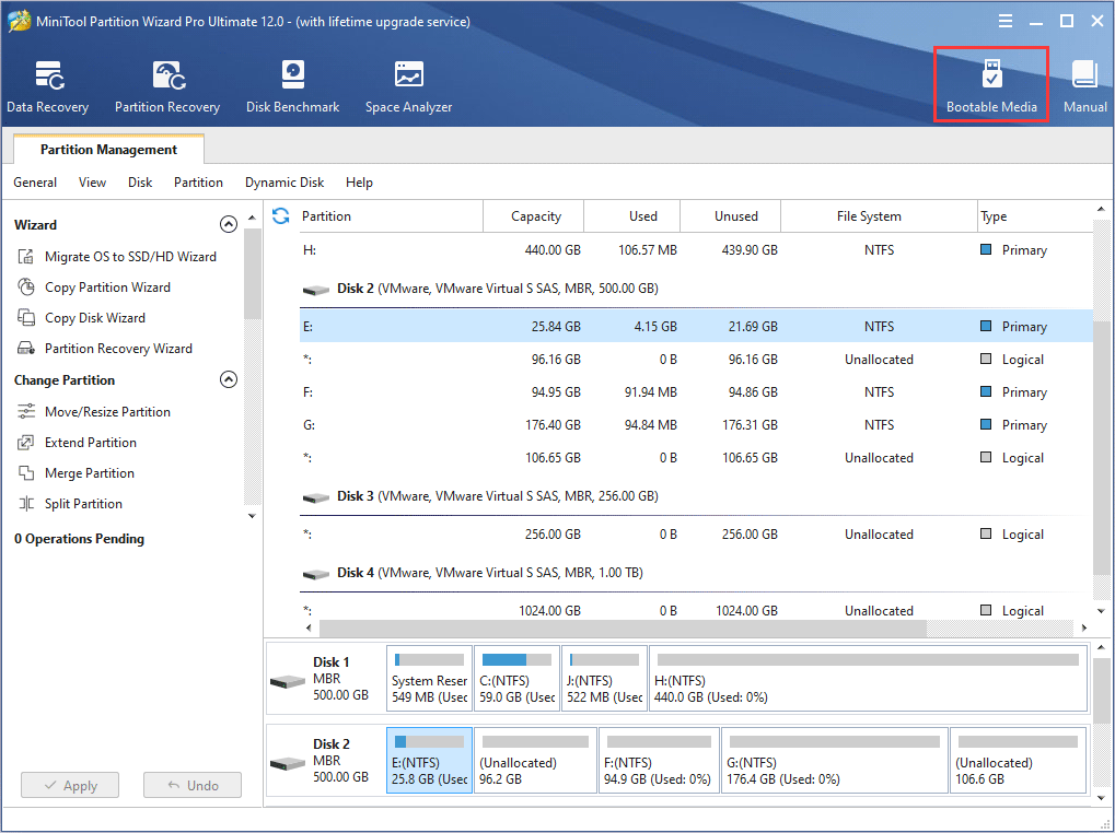 Step 2. At the main interface, click Bootable Media Builder to create a MiniTool Partition Wizard Bootable Edition with a USB drive and boot from it.
